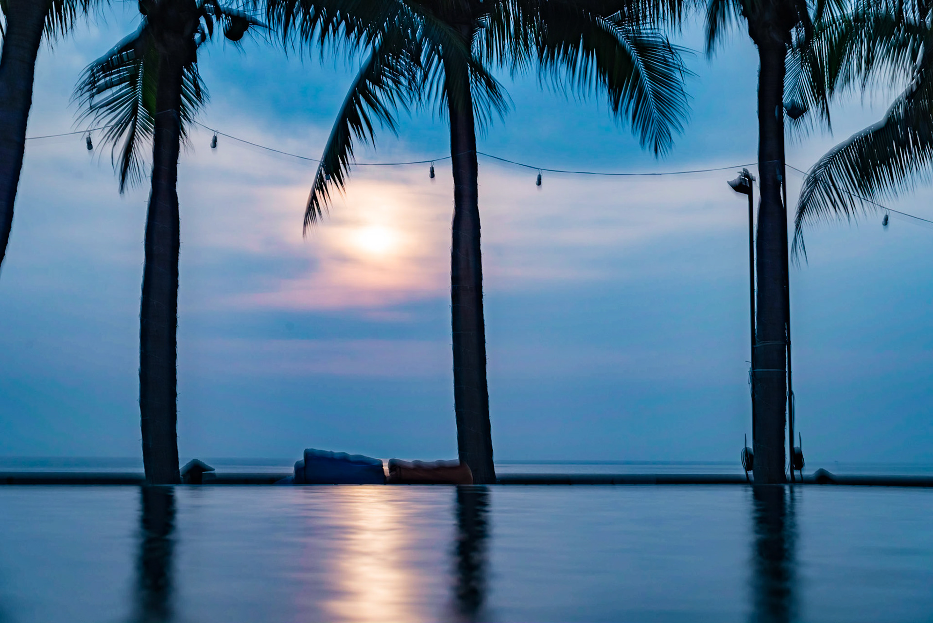 The setting sun reflected off a rice paddy.